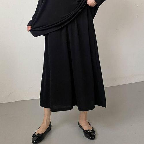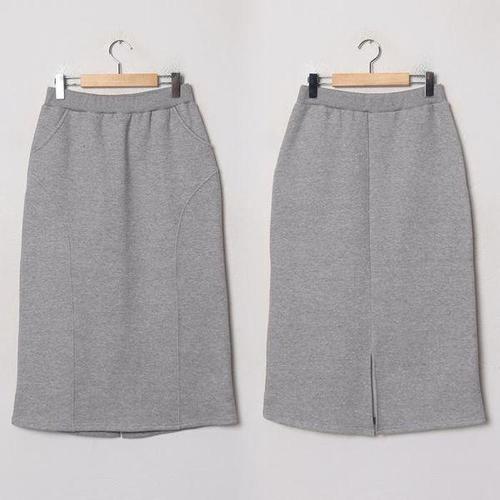 부엉구구 여성 겨울 루즈핏 허리 밴딩 H라인 하프 기장 기모 롱 치마 롱 스커트 OW0156A
