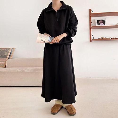 [유야]기모 무지 반집업 맨투맨 롱스커트 세트 꾸안꾸 투피스 셋업 -SST0110H- 빅사이즈 루즈핏 여성 겨..