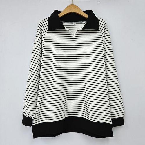 [다잇템][다잇템] 여성 빅사이즈 카라넥 콘트라스트 단가라 니트_23026273_588872