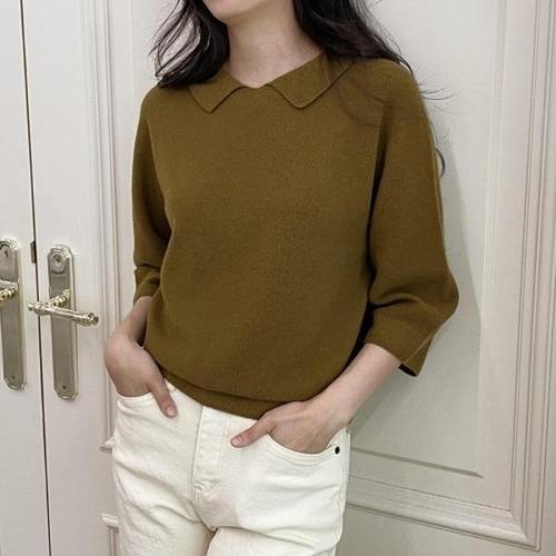 [BZEI818M_49]빅사이즈 여성 카라 정장 반팔 카라니트