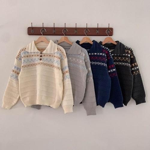 [다잇템] 여성 오픈 빅사이즈 스냅 넥 롱슬리브 카라 단추 니트
