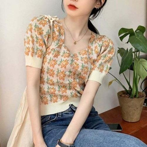 빅사이즈반팔티 여성 여름 체리 자수 귀여운 티셔츠 세미크롭 반팔