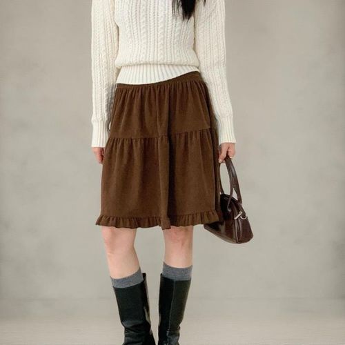 [옷자락]여성용 겨울 프릴 캉캉 코듀로이 플레어 스커트 빅사이즈