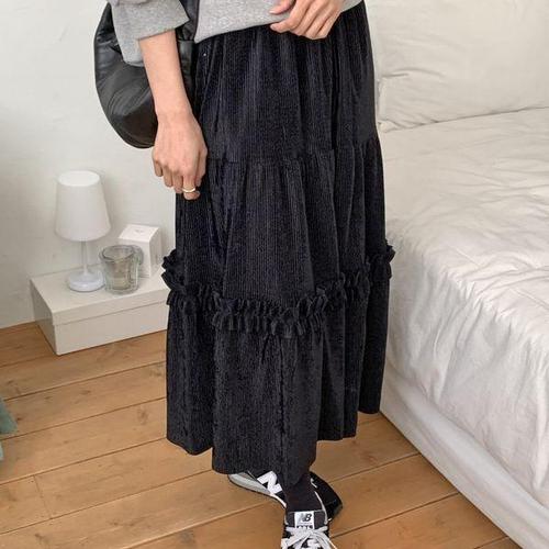 옷자락 / 여성 데이트룩 빅사이즈 프릴 코듀로이 롱스커트