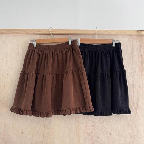 [옷자락] 여성용 겨울 프릴 캉캉 코듀로이 플레어 스커트 빅사이즈