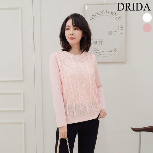 봄 가을 여자 긴팔 레이스 스판 빅사이즈 티셔츠 40-50대 중년여성 엄마옷 마담 미시 출근 하객