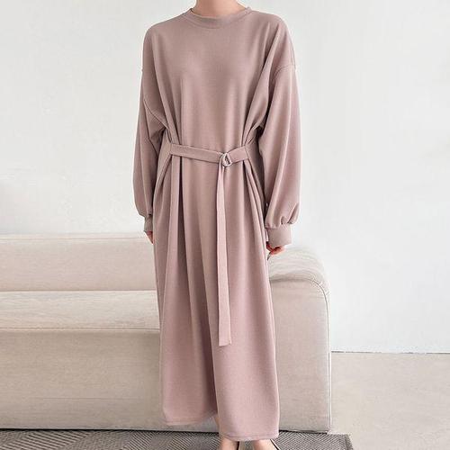 [옷자락] 여자 벨트 스트랩 빅사이즈 퍼프 가을하객룩 롱원피스