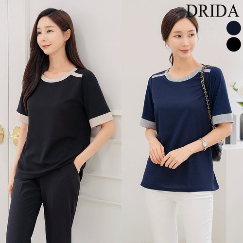 드리다 여성 여름 배색 쿨 빅사이즈 스판 티셔츠 40-50대 미시 중년여성 엄마옷 하객 상견례 출근 모임룩
