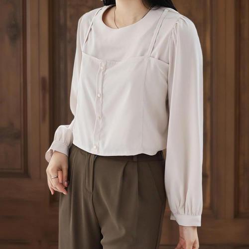 [옷자락]여성 가을 하객 패션 빅사이즈 버튼 뷔스티에 블라우스