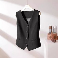 NEW 가을 여성 심플 정장조끼 캐주얼 숏조끼 슬림핏 베스트 아우터 3컬러 노카라 쇼트 베스트 무지 민소매 코트 빅사이즈 쇼트핏 베이직 고급 오피스룩 결혼식 하객룩