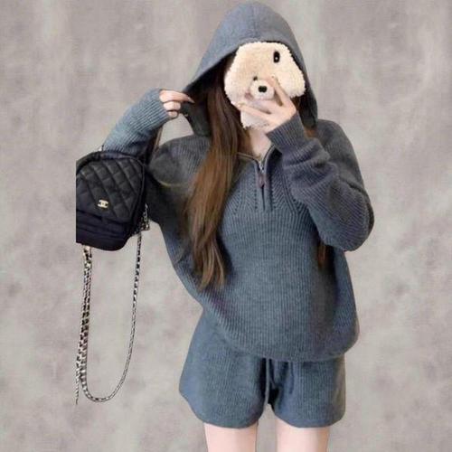 [다잇템] 여성 빅사이즈 후디 귀여운 핫팬츠 스웨터 반지퍼 세트