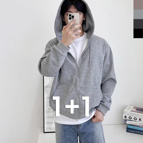 미와이 베이직 무지 오버핏 후드티 1+1