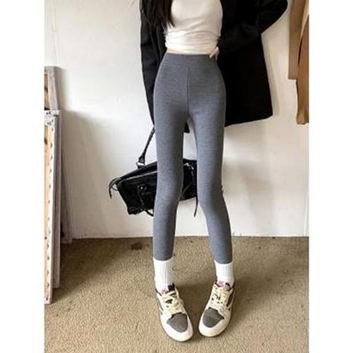 TEMU 가을/겨울 스타일 200G 단색 여성용 하이웨이스트 신축성 레깅스 (겨울용), 두꺼운 보온 기모 안감 타이츠