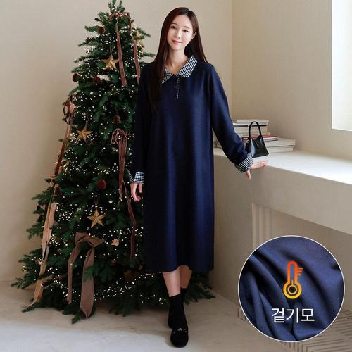 [드리다]드리다 겨울 체크 카라 겉기모 빅사이즈 롱 원피스 미시 엄마옷 캐주얼 출근
