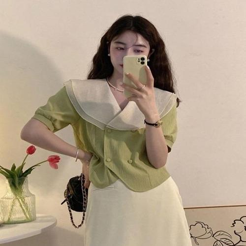 [엄지척]여자 여름 벌룬소매 이중 쉬폰 빅카라 자켓 블라우스_19652335_667501