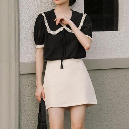 [엄지척]셔츠 빅카라 블라우스 여성 단정한 배색 소매 퍼프_19651774_667501