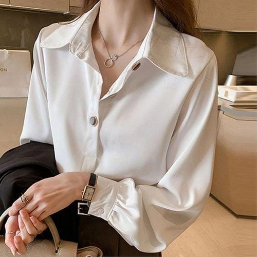 루즈핏 카라 셔츠 오피스룩 루즈핏 베이직 무지 블라우스 긴팔 데일리룩 캐주얼