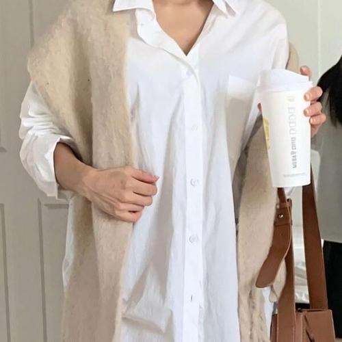 [디자이너몰]여성 빅 오버핏 무지 화이트 셔츠