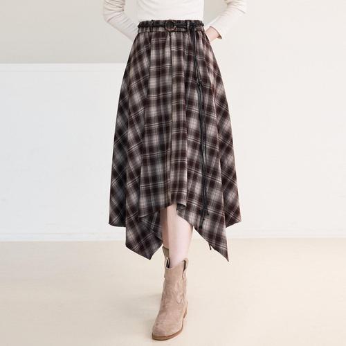 [WPBG]빈티지 체크 언발 스커트 스트랩 벨트 set_3color