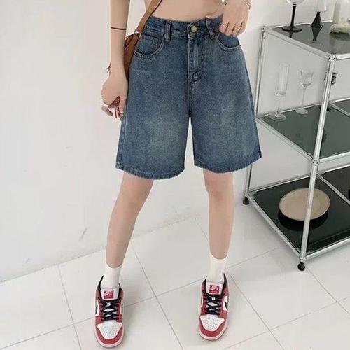 [에이치플러스몰]우먼 포컬러 빈티지라인모던 진 하프팬츠