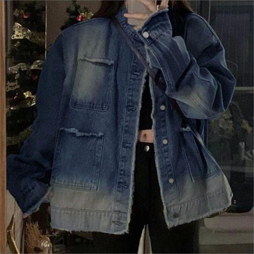 [미라클세븐]여성용 빈티지 스타일 오버핏 청 재킷