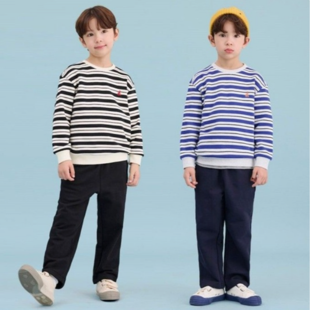 [BEANPOLE KIDS] 스트라이프 레이어드 반소매 & 긴소매 2PCS 상상세트 블랙 (BI5741U025)