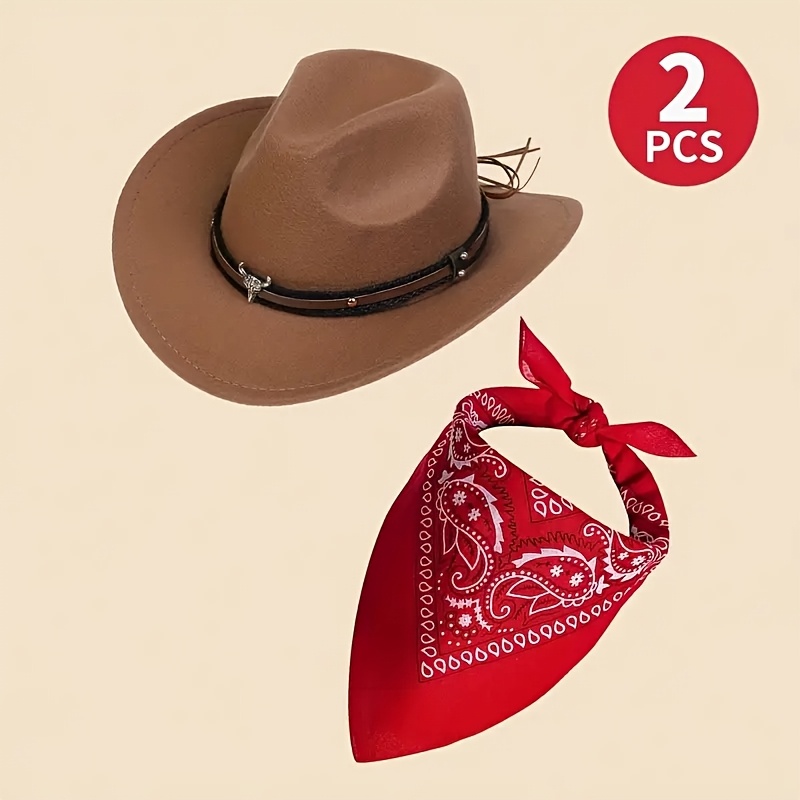 TEMU 2개 여성 웨스턴 코스튬 세트 - 모자와 스카프 포함, 농장 할로윈 파티 소품으로 완벽, 스타일리시하고 트렌디한 팝 컬처 테마