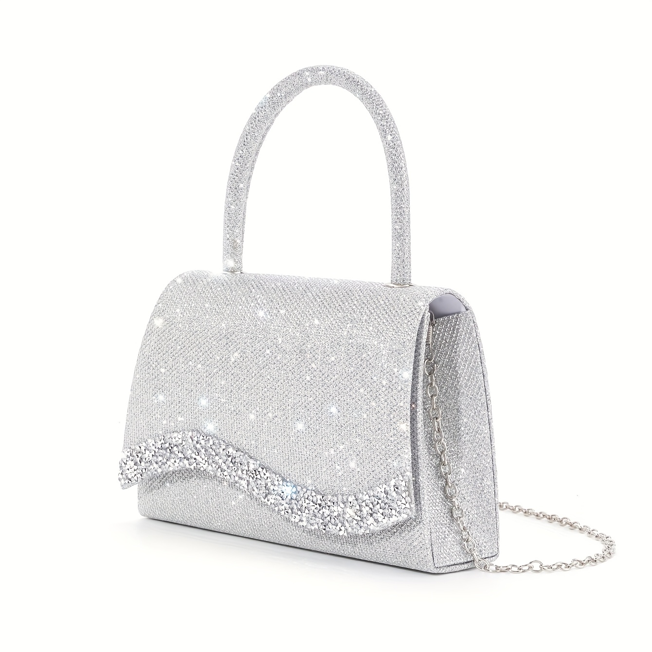 TEMU 2025년 새로운 라인스톤 장식 체인 디너 백! 단독 어깨 크로스바디 핸드백 다용도, 우아한 저녁 클러치 백 공식 행사용