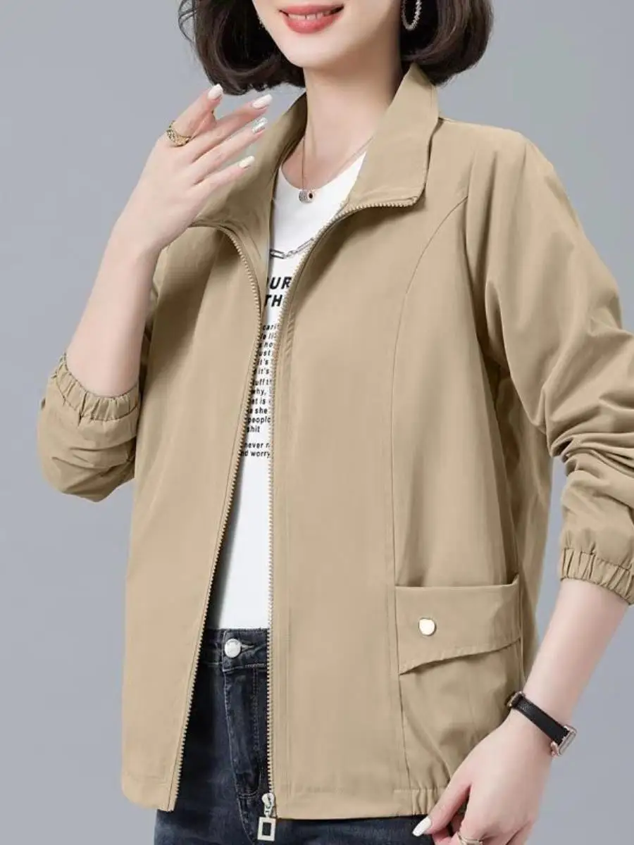 여성용 짧은 재킷 봄 가을 새로운 한국식 루즈 패션 심플 캐주얼 더블 레이어 포켓 손수건 스탠드 칼라