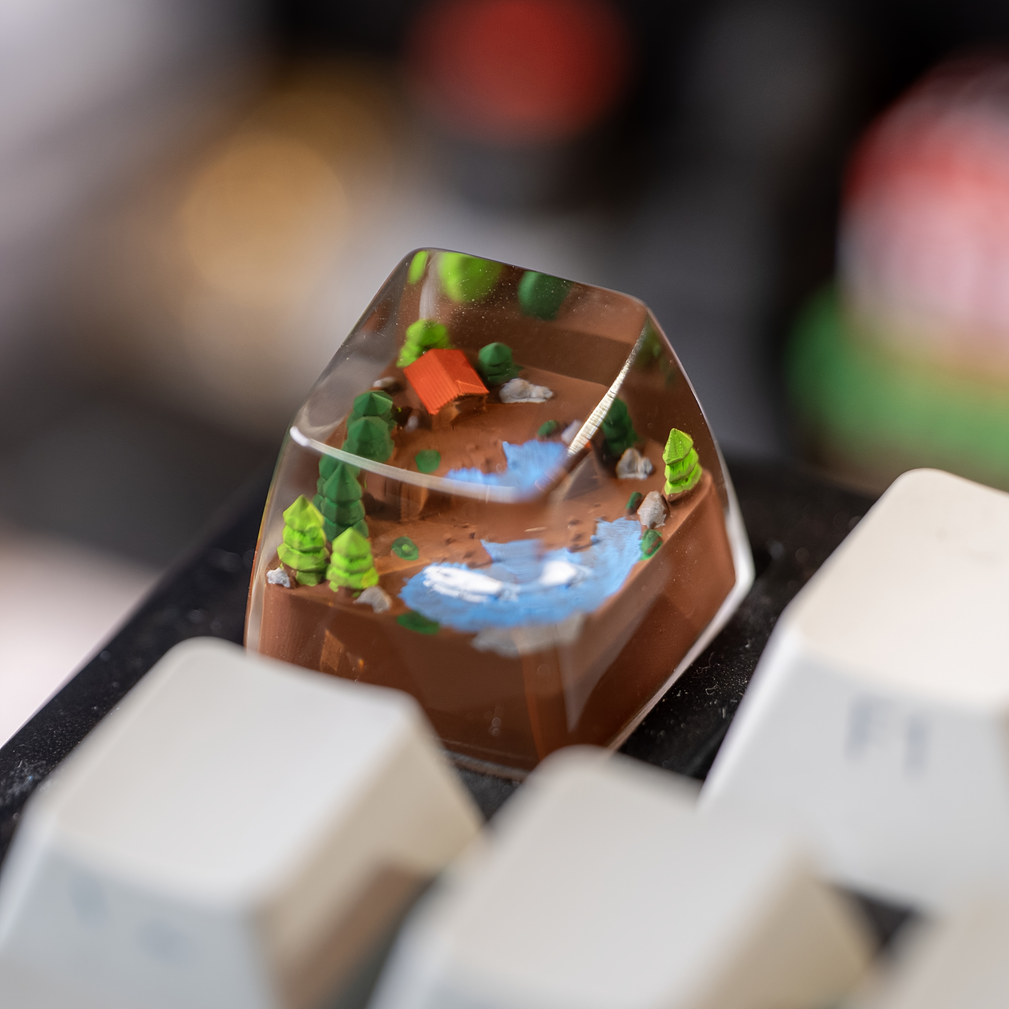 TEMU 수공예 내추럴 미니어처 풍경 호숫가 오두막 키캡 - SA 높이 기계식 키보드 호환, 키보드 애호가, 데스크탑 미학, PC 빌드 및 컴퓨터용 풍경 캡