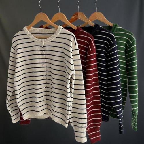 [신상오픈런]여성용 가을 꽃무늬 단추 니트 라운드 가디건 빨강 초록