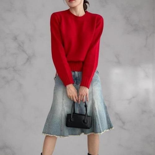 [다잇템_패션]여성 스웨터 클래식 U넥 FW 울 빨간 스웨터