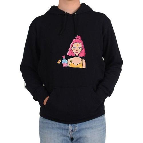 [에이치플러스몰]기모후드티 향수 파마아가씨 빨간머리 생각이 많은 여자그림 다양한 색상 사이즈