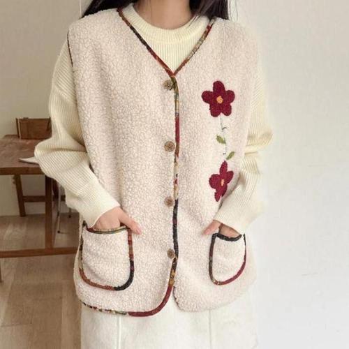 [셀러허브_여성트랜드패션]ONM 뽀글이 빅사이즈 털조끼 겨울 꽃자수 조끼 5컬러