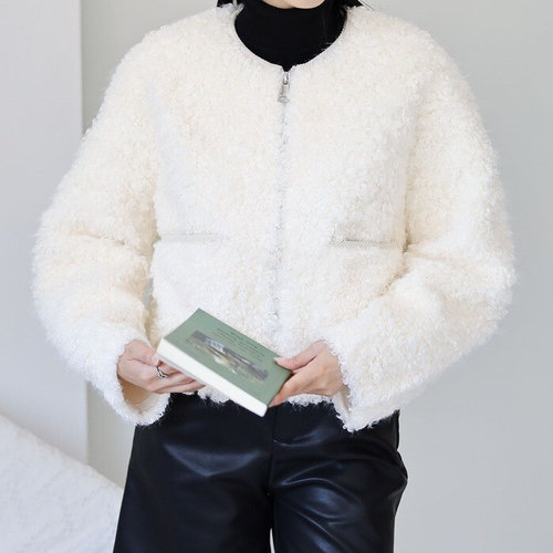 플러리싱 / 러블리 뽀글이 양모 노카라 자켓 플러리싱
