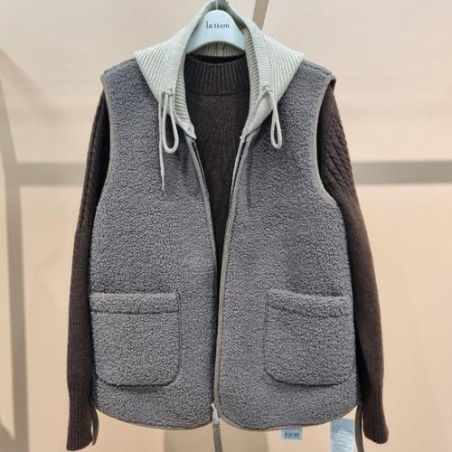 [라티움]Destijl HC34 25FW 안감부드러운무스탕느낌 니트후드탈부착 뽀글이조끼 D2543VT01 (42064993)