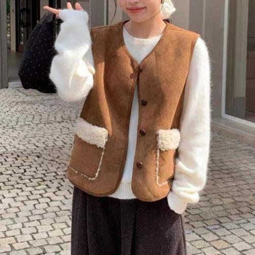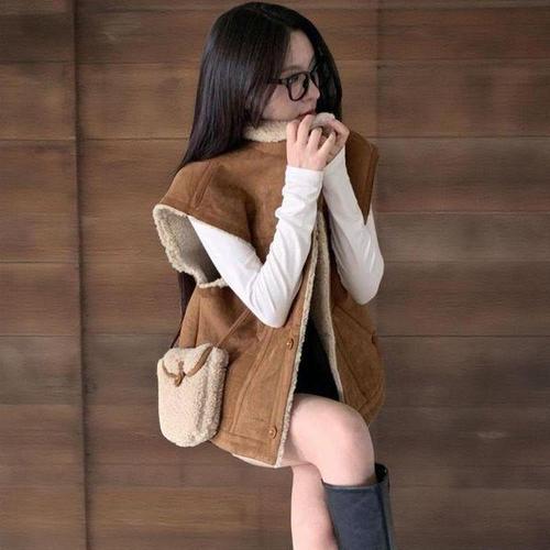 [신상오픈런]여성 포켓 퍼안감 스웨이드 무스탕 베스트 뽀글이 조끼