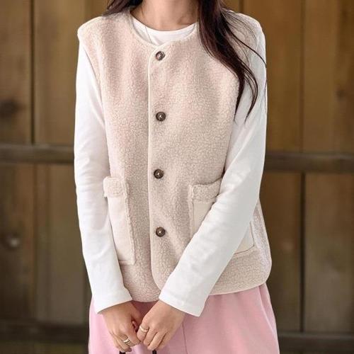 [신상오픈런]|CSJ69DD|여성 겨울 양털 조끼 무스탕 포켓 뽀글이 단추 이너_23716767_597559