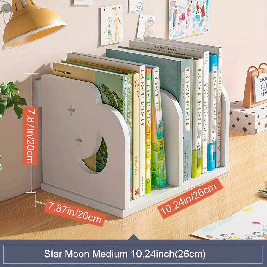 TEMU 두꺼운 PVC 무자국 보드, 별과 달 모양의 속이 빈 간편 디자인 책꽂이, 가정용 서재 데스크탑 수납 랙, 사무실 문서, 기숙사 간편 책장, 데스크탑 교과서 정리, 문서 수납 랙, 신학기 책장 선물