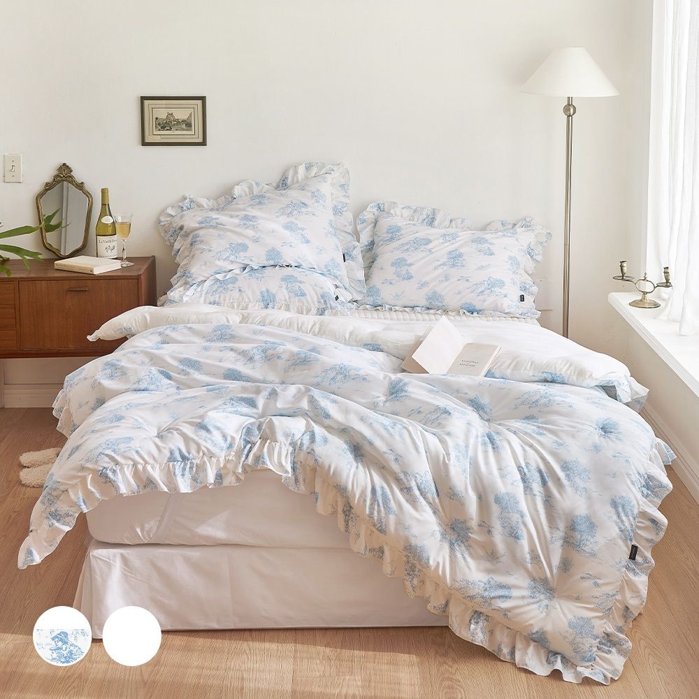 [쁘리엘르] 브레스 고밀도 워싱 순면 이불커버프릴베개세트(SS/Q) 7종