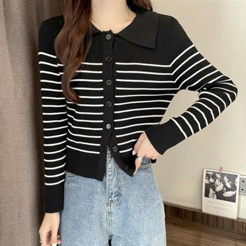[오너클랜]인기상품 가디건 카라 니트 스트라이프 골지 사무실 긴팔 2컬러 [WFG36GT_250919]