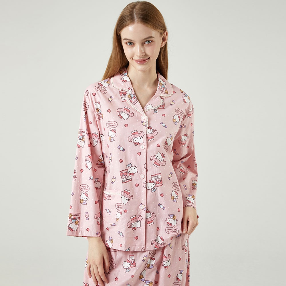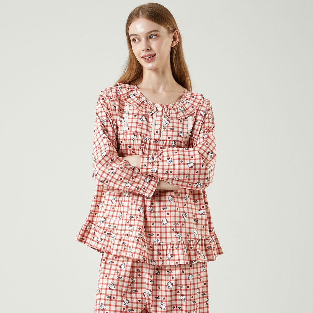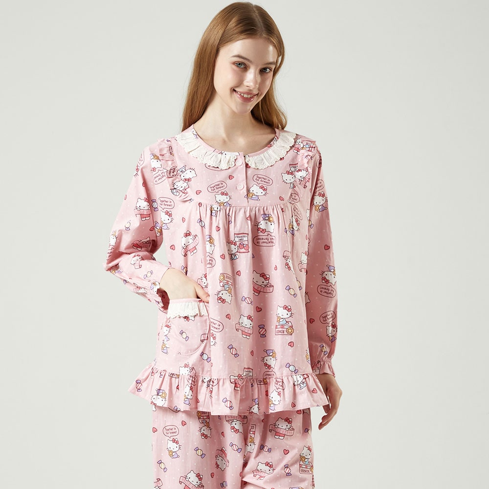여자파자마 산리오 헬로키티 가을겨울 잠옷 순면 캐릭터 홈웨어 실내복 긴팔 슬립웨어