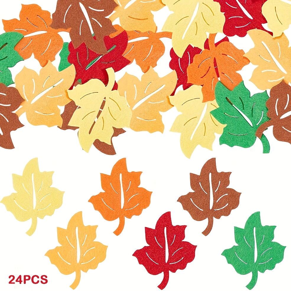 TEMU 24개 가을 단풍잎 펠트 어플리케 - 6가지 생생한 색상(빨강, 주황, 노랑, 초록, 갈색, 진갈색) 2.6x2.1인치 부직포 DIY 공예, 스크랩북킹, 홈 데코 및 계절 프로젝트용