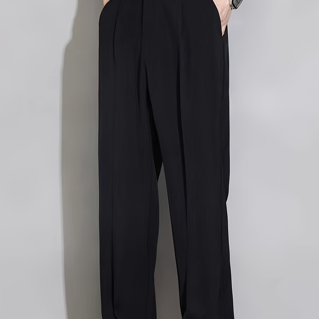 TEMU 남성용 레그 드레스 팬츠 - 블랙, 비스턴 스트레치 재질, 버튼 디테일, 직업 및 여름 착용을 위한 정규 핏, 여름 필수품 | 클래식 드레스 팬츠 | 내구성 있는 재질