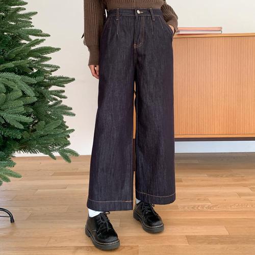[옷자락]여성 논페이드 생지 진청 와이드 데님 팬츠
