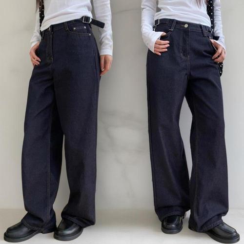 [신상오픈런]여성 캐주얼 논페이지 사이드버클 생지 와이드 청바지