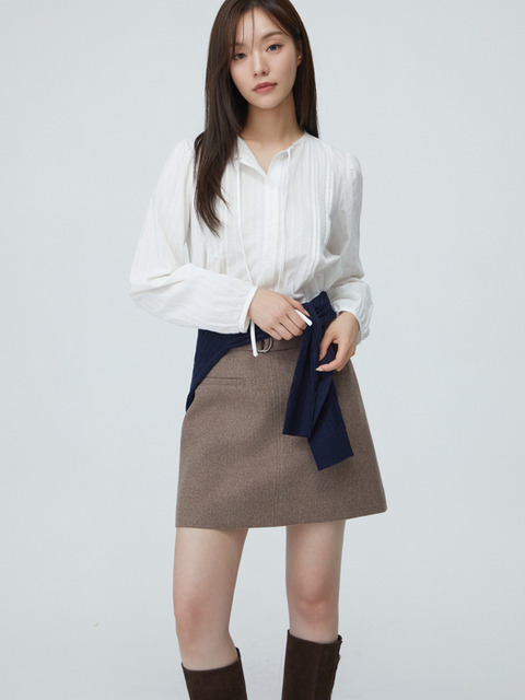 크로커다일레이디 페미닌 플리츠 블라우스_CLCWBL205