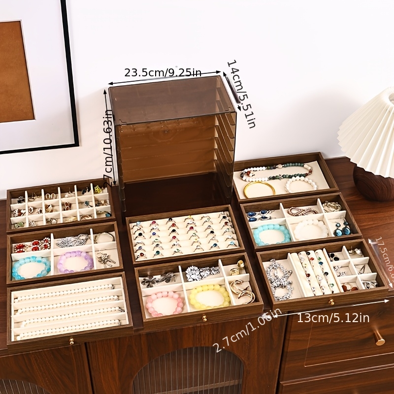 TEMU 8단 월넛 주얼리 보관함, 대용량 다기능 주얼리 보관함, 반지, 목걸이 및 팔찌 레이어드 보관, 드레스 테이블 및 매장 디스플레이에 적합, 새로운 집 선물로 적합한 고급 선물, 주얼리 박스