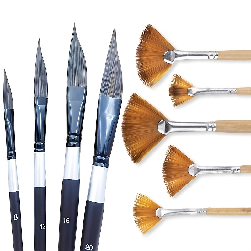 TEMU 9개 등급 사각 팬 수채화 브러쉬 (4개 앵글 브러쉬, 5개 팬 브러쉬 포함), 습식 및 건식 페인팅용 | 전문가용 인물, 식물 및 캘리그라피 디테일 드로잉 도구