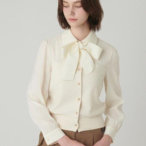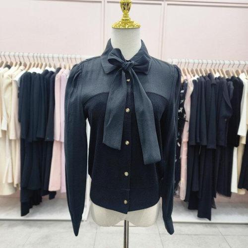 [샤틴]셔츠매칭 리본끈 탈,착 니트블라우스S244B251A03_JK